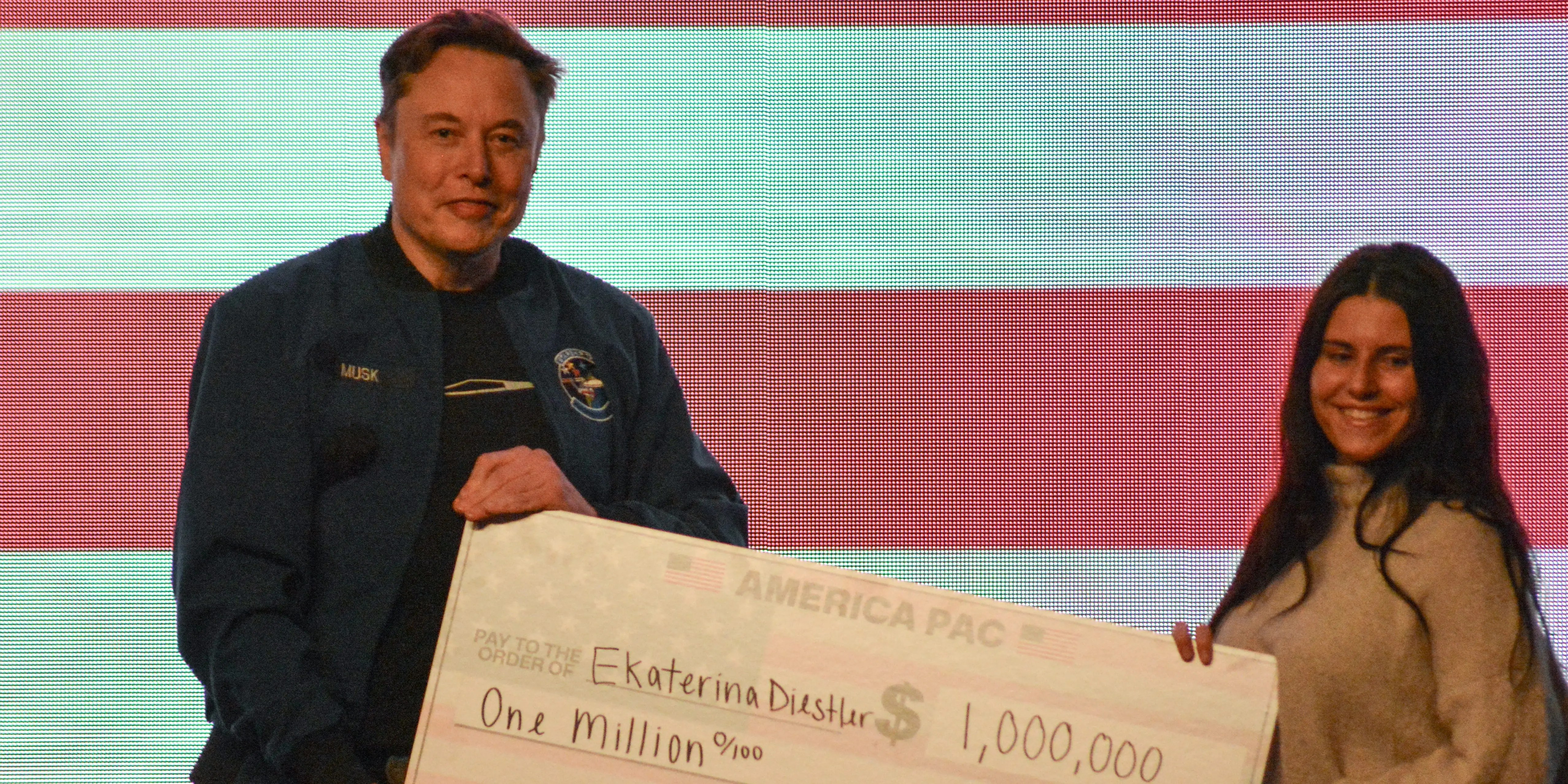గ్రీన్ బే విస్కాన్సిన్లోని ఒక టౌన్ హాల్లో ఎలోన్ మస్క్ ఇద్దరు ఓటర్లకు 1 మిలియన్ డాలర్ల చెక్కులను అందజేశారు. ఈ కార్యక్రమానికి రాష్ట్ర సుప్రీంకోర్టుకు పోటీ చేస్తున్న కన్జర్వేటివ్ జడ్జి బ్రాడ్ ష్రిమెల్కు మద్దతుగా ఉంది.
