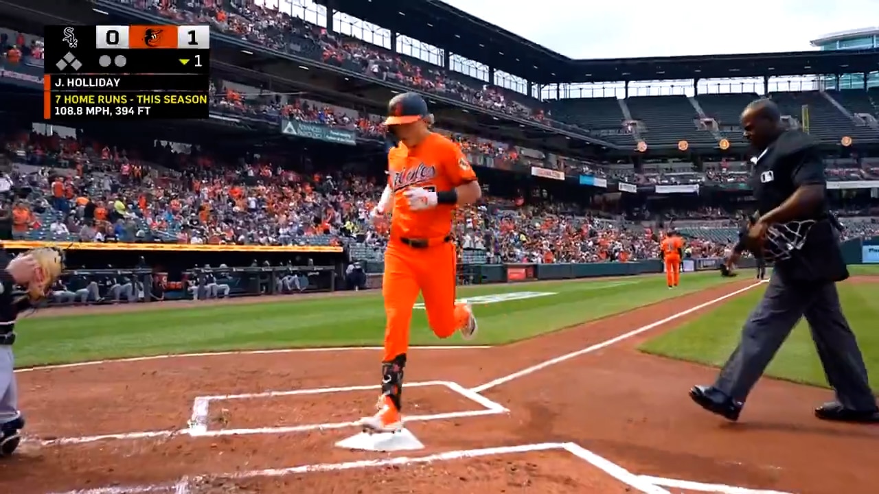 జాక్సన్ హాలిడే చికాగో వైట్ సాక్స్ మీదుగా బాల్టిమోర్ ఓరియోల్స్కు ప్రారంభ ఆధిక్యాన్ని ఇవ్వడానికి తన మొదటి కెరీర్ ఆధిక్యాన్ని హోమ్ రన్ చేశాడు.